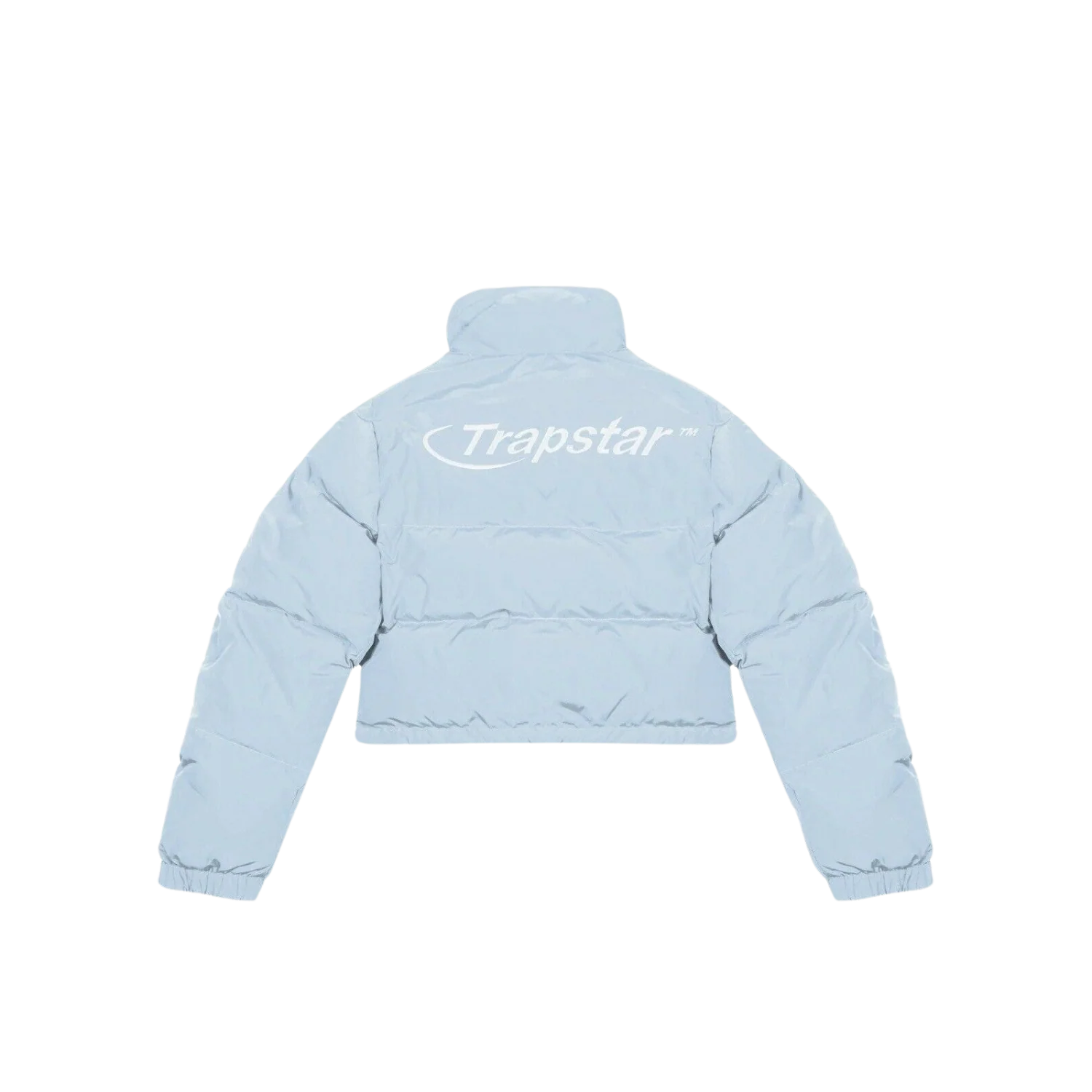 Design | Cropped, slim-fit puffer in Ice Blue with bold branding |